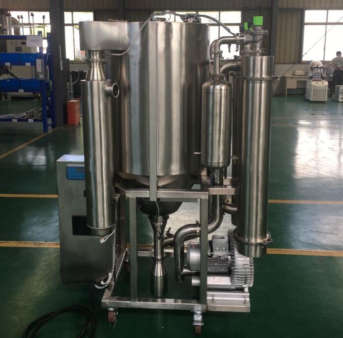 實驗型噴霧干燥機流程,在普通狀況下,都能滿足產(chǎn)質量量(如顆粒尺寸散布、剩余濕含量、體積密度等)和產(chǎn)量的請求。一級流程,代表著絕大多數(shù)的噴霧干燥系統(tǒng)。但是,為了改善產(chǎn)質量量和進步干燥器熱效率,這就產(chǎn)生了噴霧干燥和流化床干燥或帶式干燥組合的二級和三級干燥系統(tǒng)。
